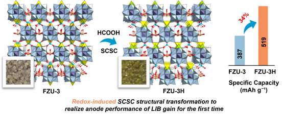 近日,郑寿添/孙财/蔡平伟课题组在全无机多铌氧簇锂离子电池负极材料领域取得新进展,相关成果以“Single-Crystal-to-Single-Crystal Transformation in a ThermallyStable All-Inorganic Polyoxoniobate Framework Boosts LithiumIon Battery Anode Performance”为题发表在国际顶级期刊Angewandte Chemie International Edition。