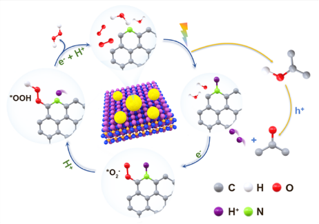 传统无机助催化剂(如Au、Ni、CoOx和SnO2等)虽然能够提升光催化生成H2O2的效率,但由于其多组分体系的复杂性,使得在原子尺度上精确识别活性位点面临挑战,进而导致反应机理研究存在困难。相比之下,有机聚合物光催化剂具有明确的活性位点结构,不仅更易于识别和精确调控,还能显著提升光催化性能。更重要的是,这类材料为深入理解氧还原反应路径选择性和决速步骤的本质规律提供了新的研究视角。通过对光催化ORR产H2O2过程中助催化剂活性位点作用机制的系统研究,将有助于开发具有广泛适用性的高效助催化剂,从而提升多种光催化体系的反应效率。