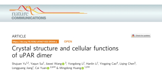 2022年3月29日,我院黄明东教授与生物科学与工程学院袁彩研究员团队合作在Nature Communications上发表了题为“Crystal structure and cellular functions of uPAR dimer”的研究论文。