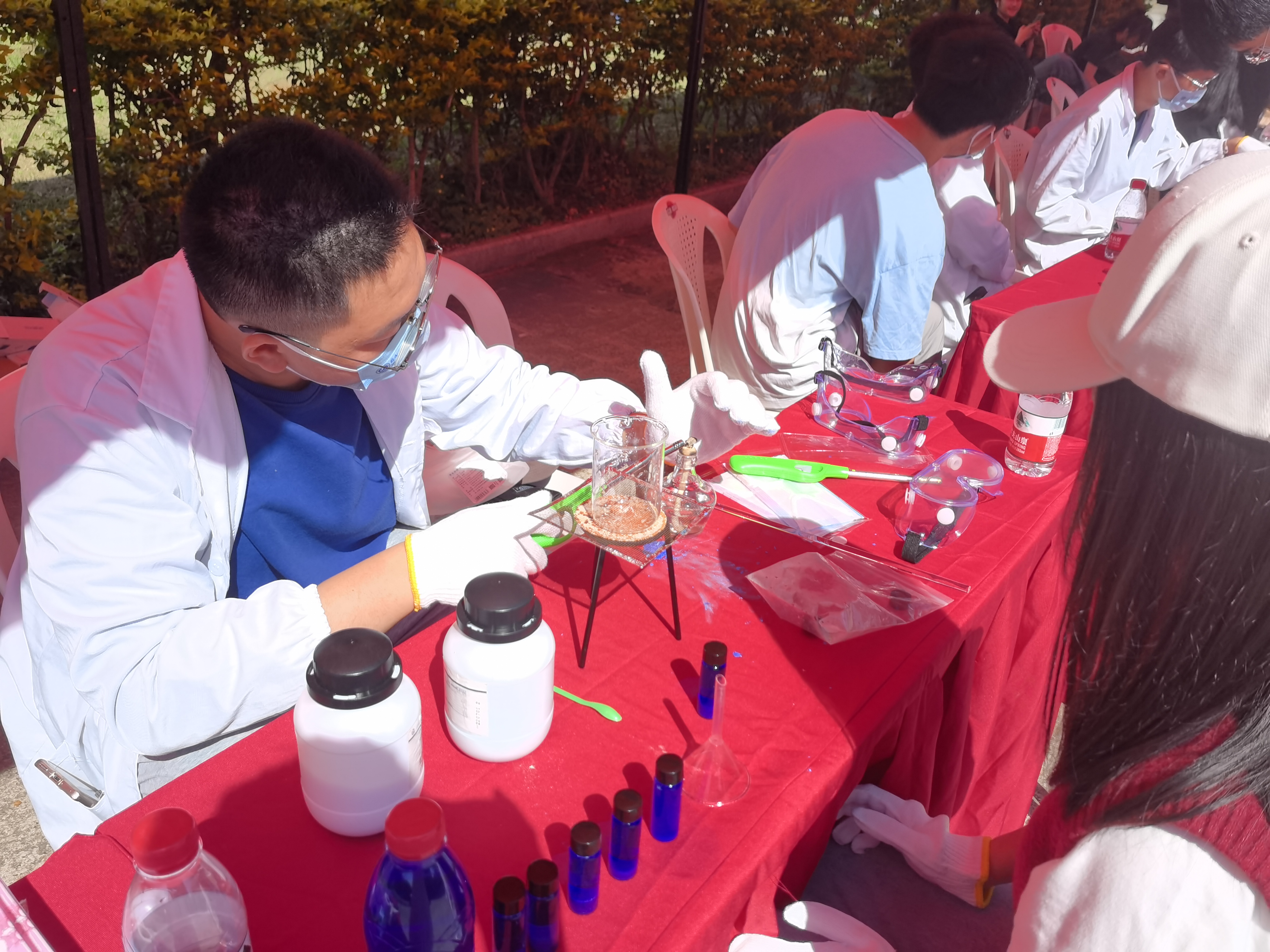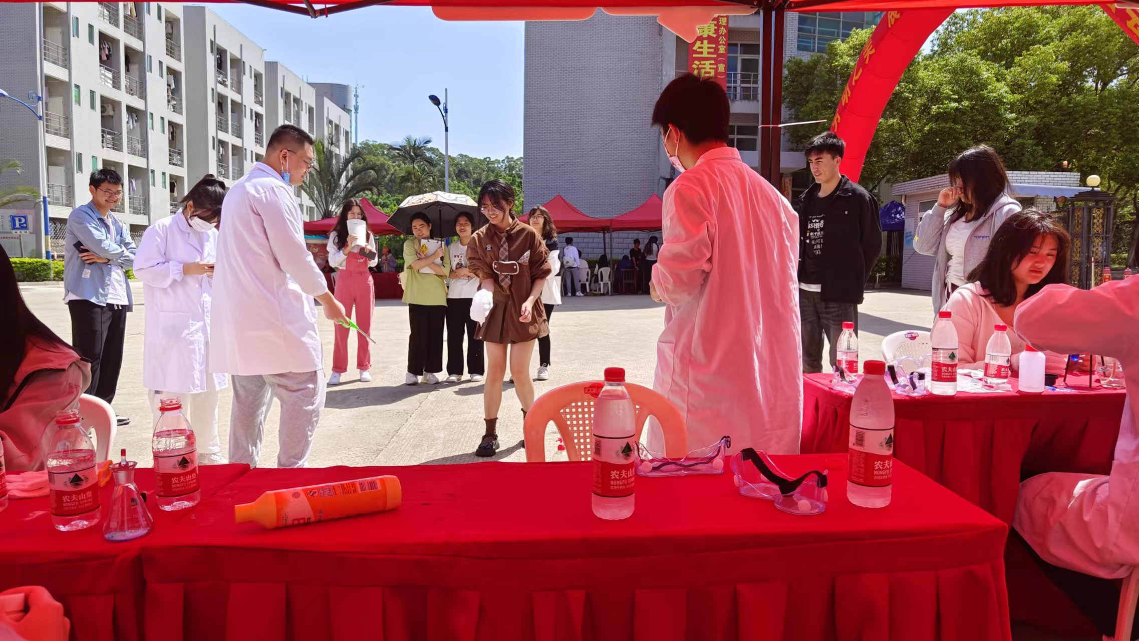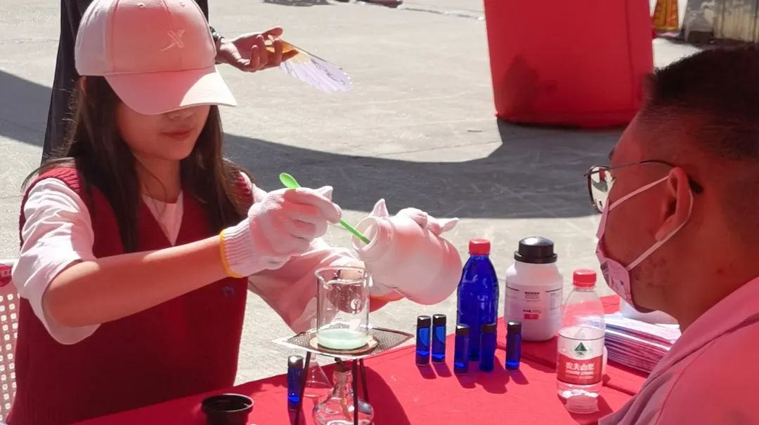 2022级本科生在铜盘校区举行了五一游园会会场,开展“化‘young’科普讲堂小讲师”系列活动。
