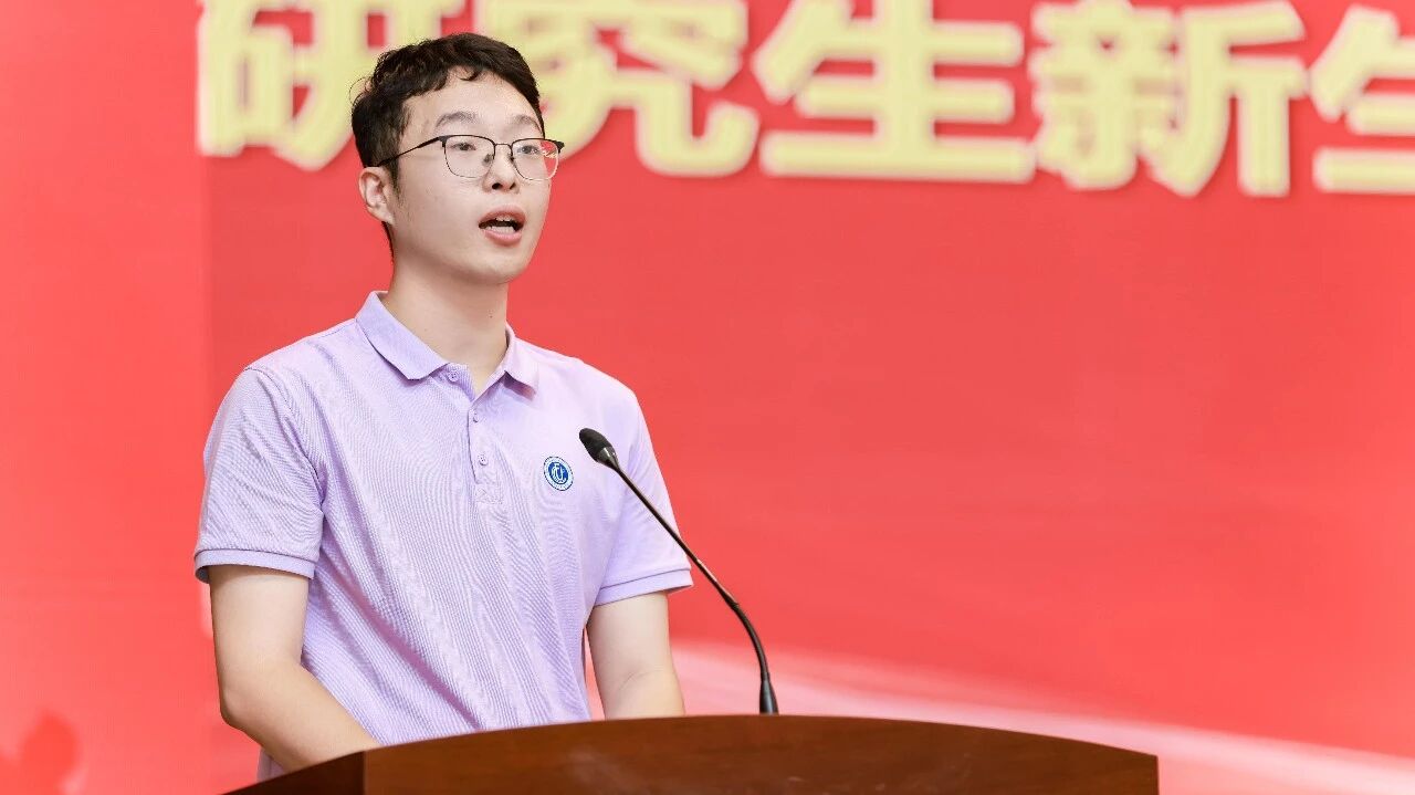 2025级物理化学专业博士新生梁田作为研究生新生代表发言。首先,他回顾了硕士阶段在福大色色动漫