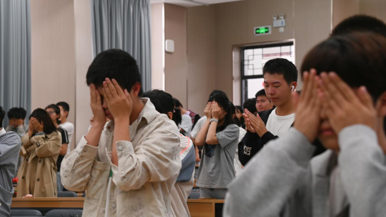 最后,丁闽江教授再次强调,“爱、温暖、陪伴与支持”是心理辅导中最为核心的要素,并现场带领全体心理委员学习“放松减压手操”,帮助大家在服务同学的同时,也能有效调节自身情绪、缓解压力,提升心理调适能力,实现助人与自助的良性循环。
