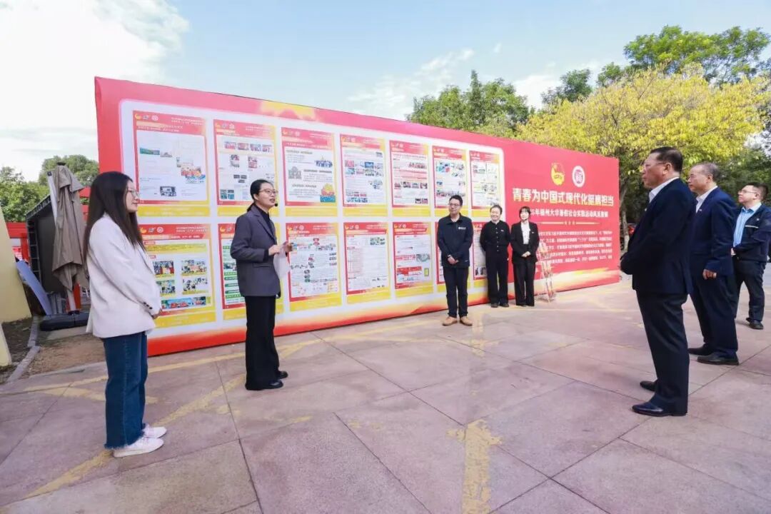学生会、研究生会结合学科特色,以展板陈列形式,集中呈现学院2025年度服务学生的实践成果。校党委书记陈国龙、副书记王向阳一行莅临现场指导,与师生深入交流。