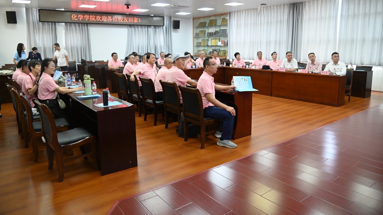 继而,校友们走进仪器分析实验室。林佳丽老师耐心细致地讲解着实验设备的功能以及当前的教学科研状况,老校友们时而驻足观看,时而讨论交流,抚今追昔。
