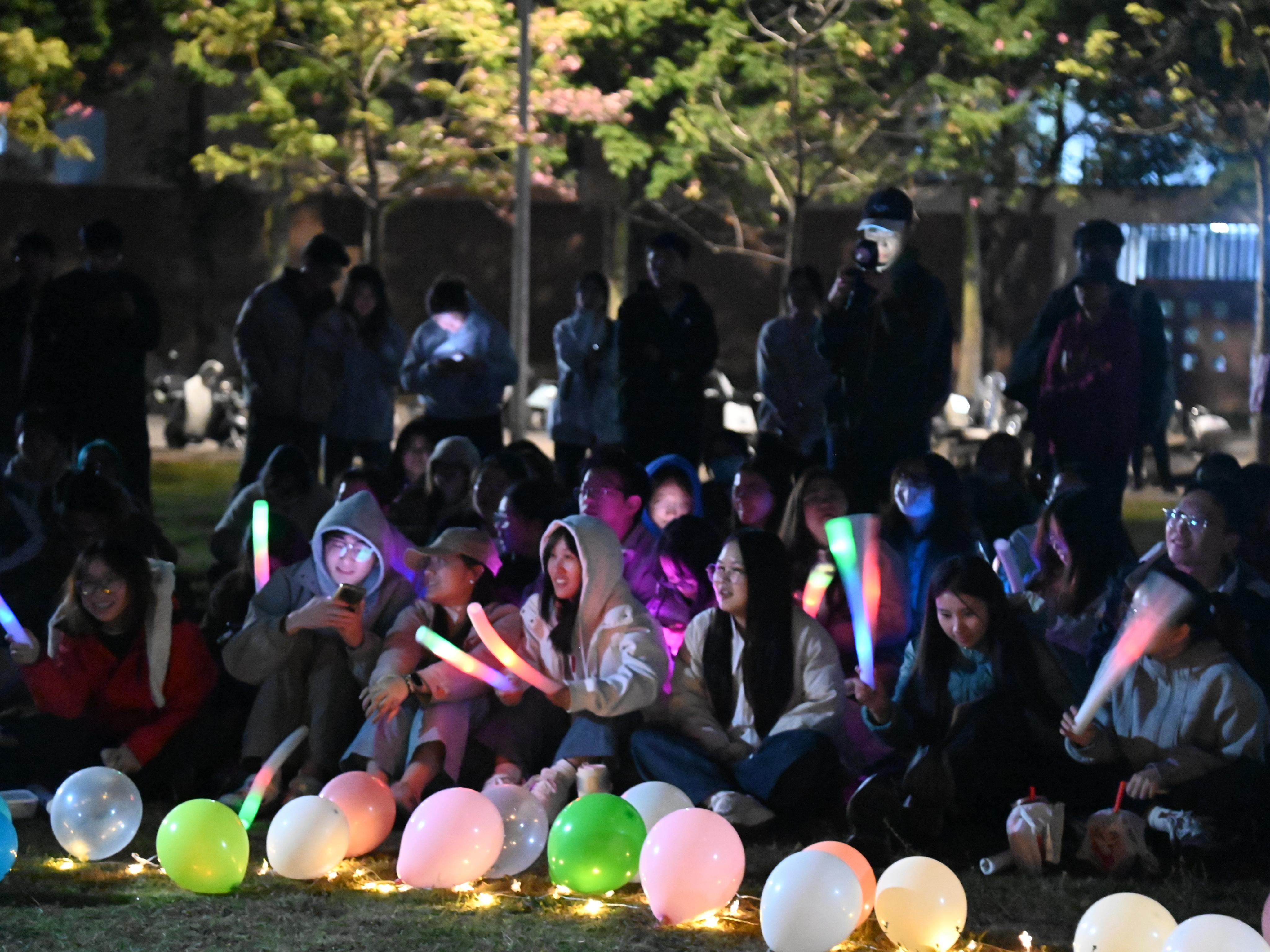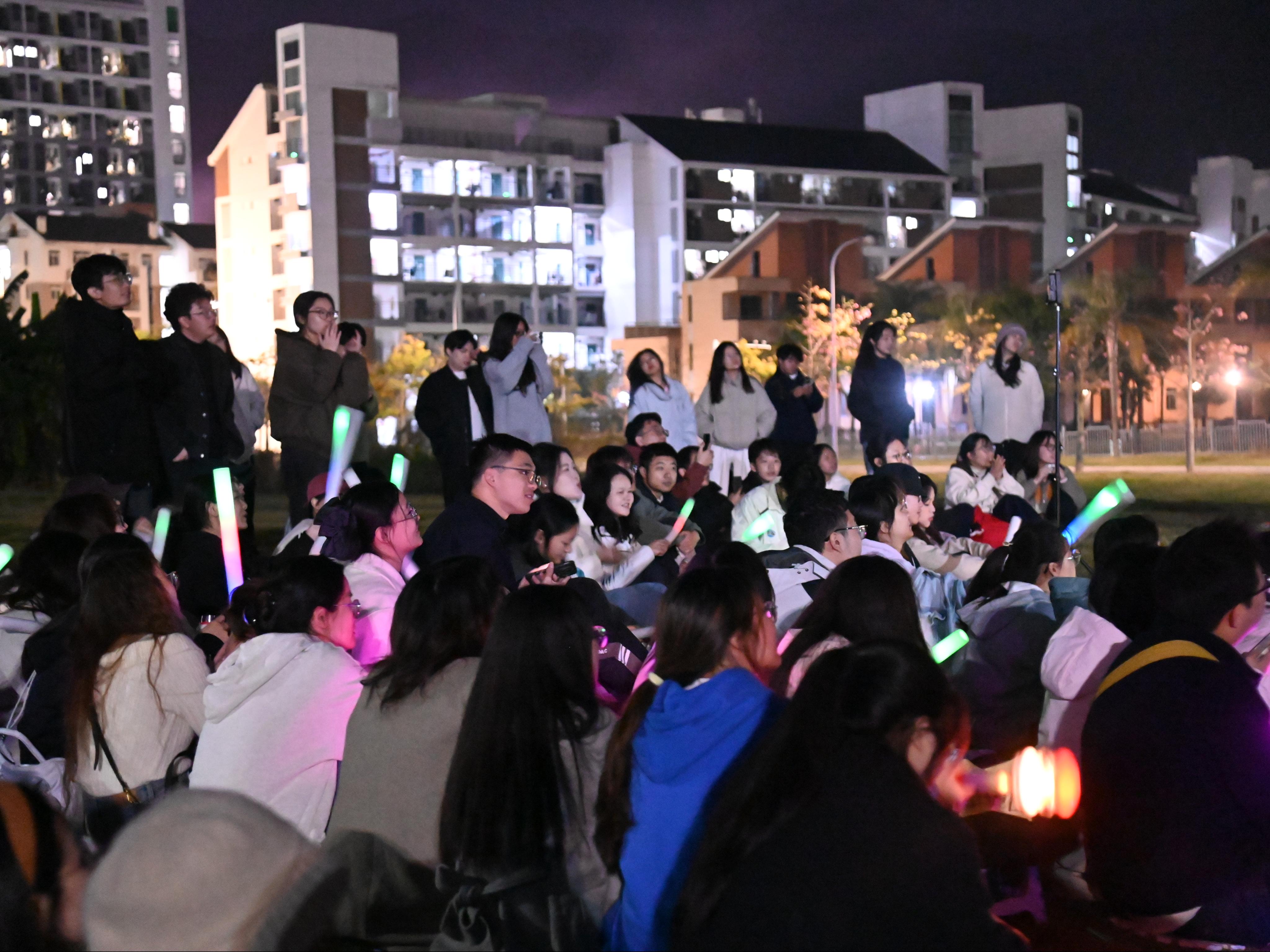 “互动点歌”环节同学们热情参与,将心仪的曲目化作一份份“星光心愿”,当《七里香》的熟悉旋律响起,大家不约而同点亮手机灯光,星光、草坪、歌声、笑脸,共同交汇成专属我们的温暖画面。