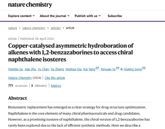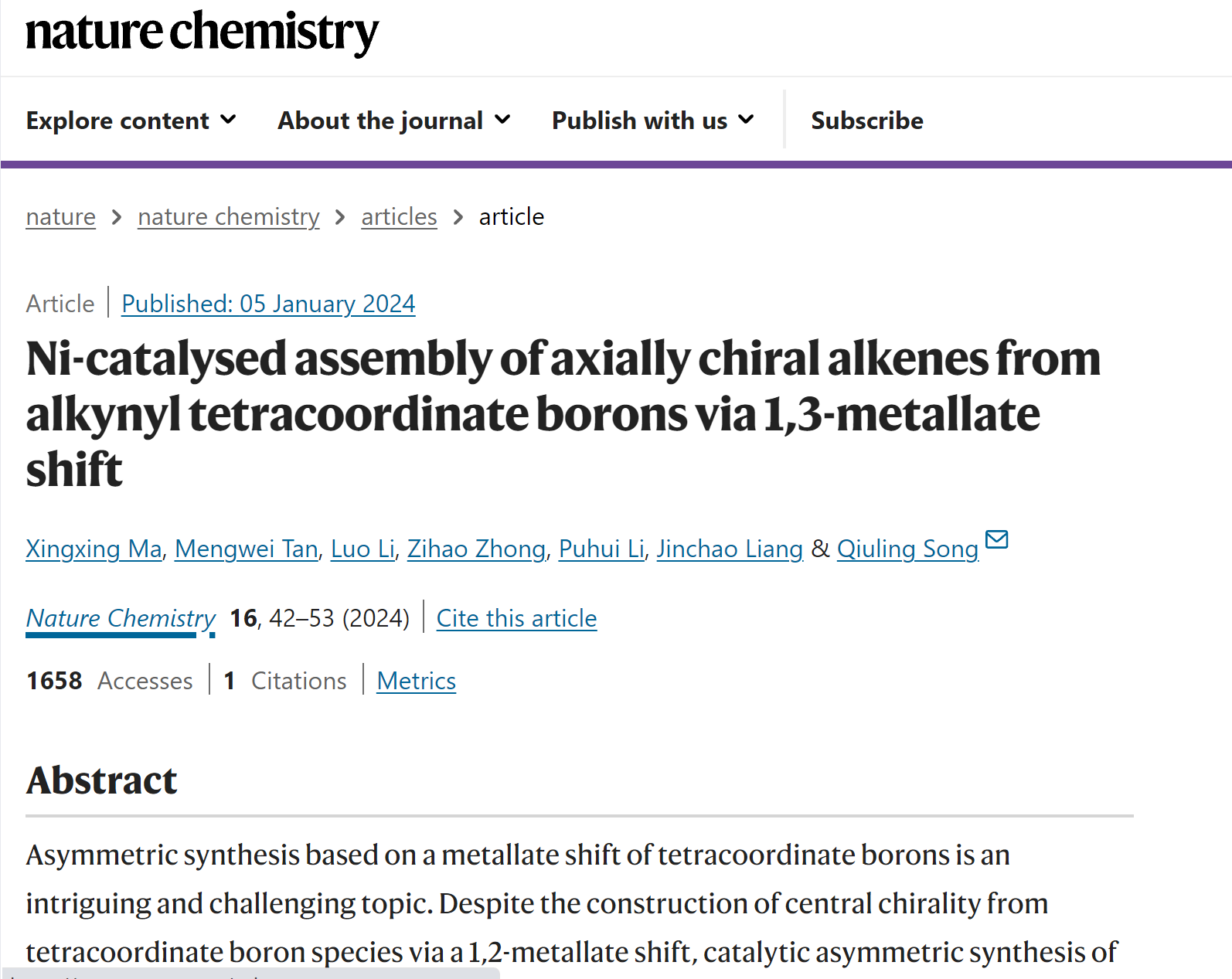 2025年5月10日,我院宋秋玲教授课题组在《Journal of the American Chemical Society》在线发表了题为“Zr-Catalyzed Assembly of 1,1,1-Triborylalkanes from Alkenes and HBpin”的研究论文,该研究开发了一种基于 Zr 的催化体系,实现了硼烷对烯烃的高区域选择性和化学选择性 1,1,1-三硼化反应。 在有机化学的广阔领域中,有机硼化合物凭借其独特的性质和广泛的应用,一直是科研人员关注的焦点。从有机合成的基础反应,到制...