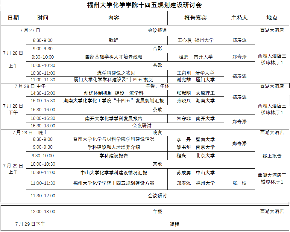 有机合成系列讲座主讲人1:李超忠 研究员 中国科学院上海有机化学研究所讲座1:自由基氟化和三氟甲基化时间:2021年7月24日 9:00-12:00 14:30-17:30 (现场交流咨询) 地点:嘉锡楼413 9:00-10:30(主题报告)讲座2:科研基金申请规范及经验交流时间:2021年7月25日 上午9:00-11:30 下午14:30-17:00 地点:实验中心南301讲座3:有机合成与功能福建省高校重点实验室建设发展意见指导与探讨时间:2021年7月26日 ...